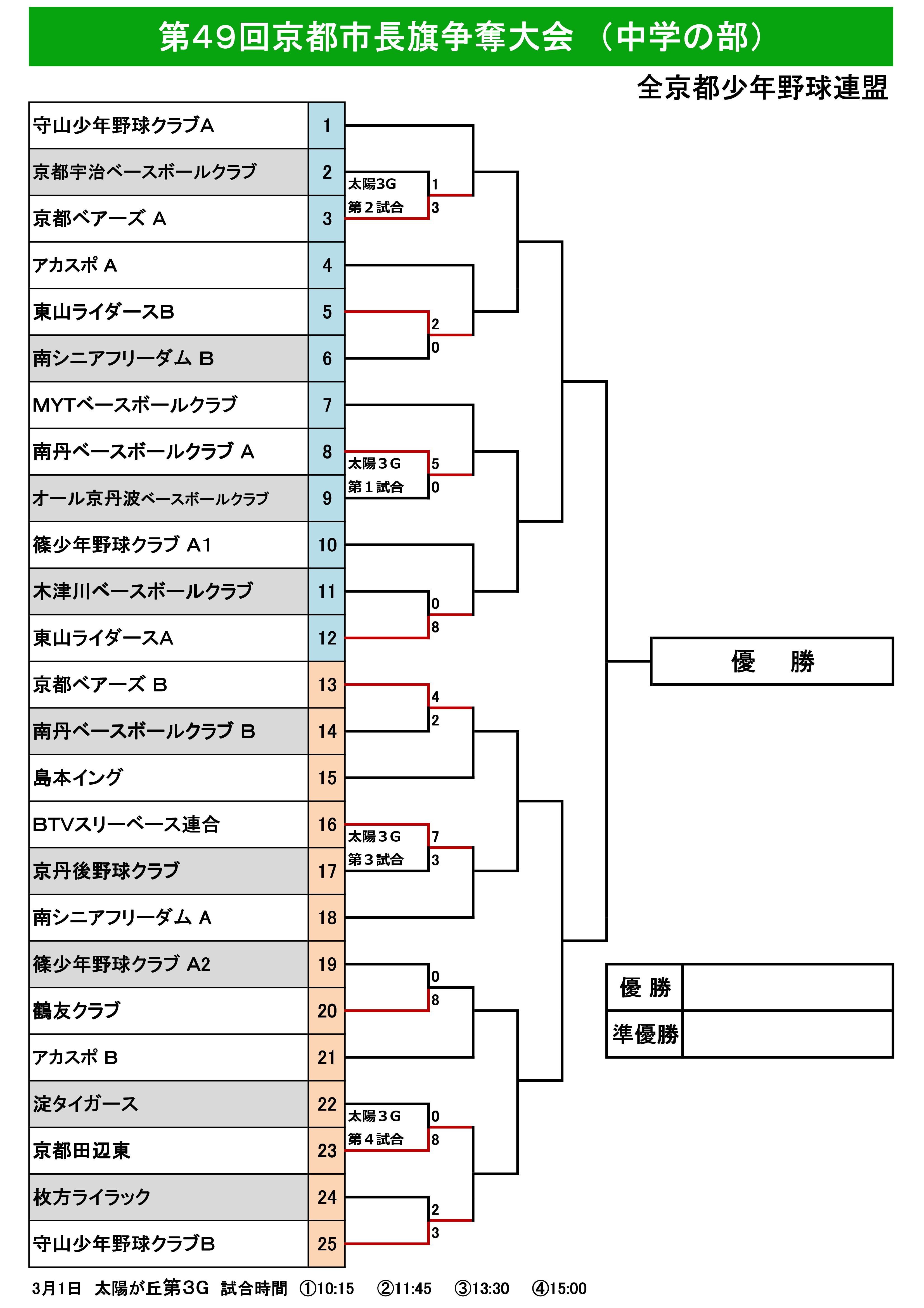 【3/29更新】第49回京都市長旗争奪大会トーナメント表
